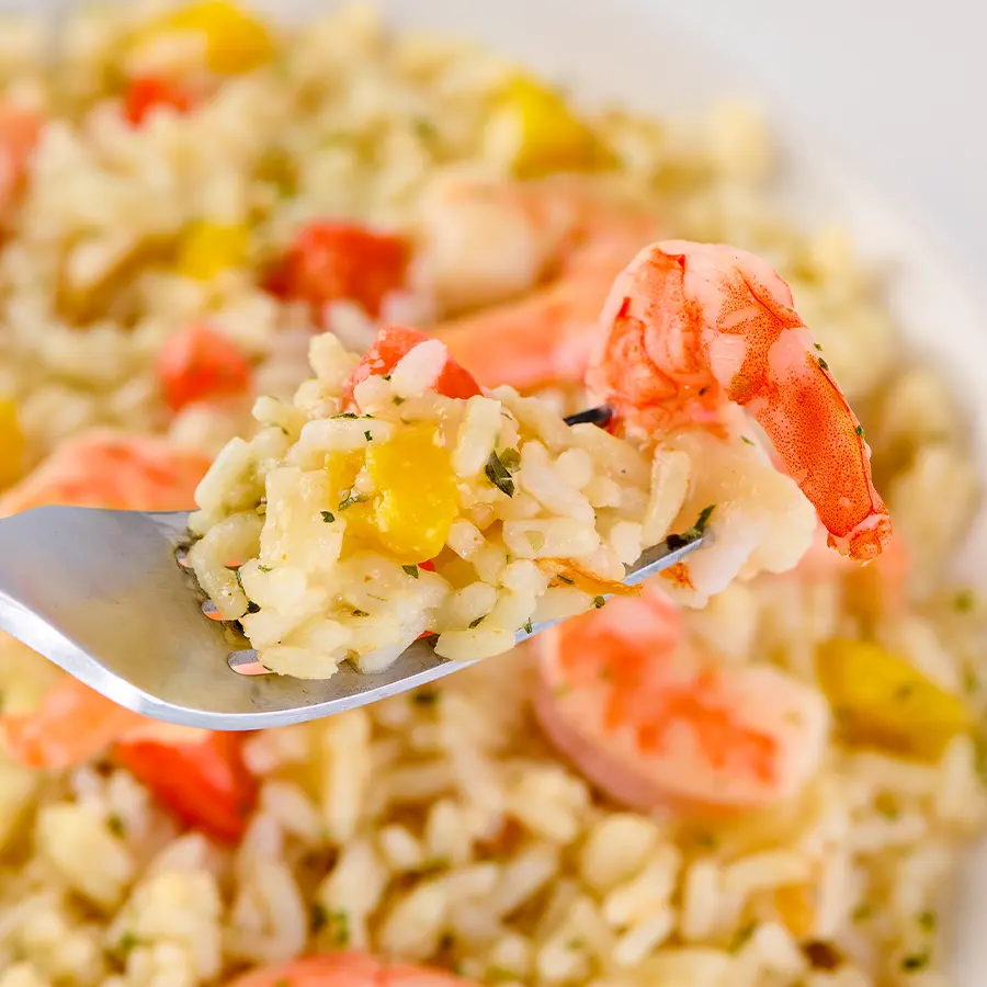 Plump shrimp, fluffy rice, and colorful veggies come together in a savory garlic butter sauce that’s full of flavor. It’s simple, satisfying, and ready when you are.
