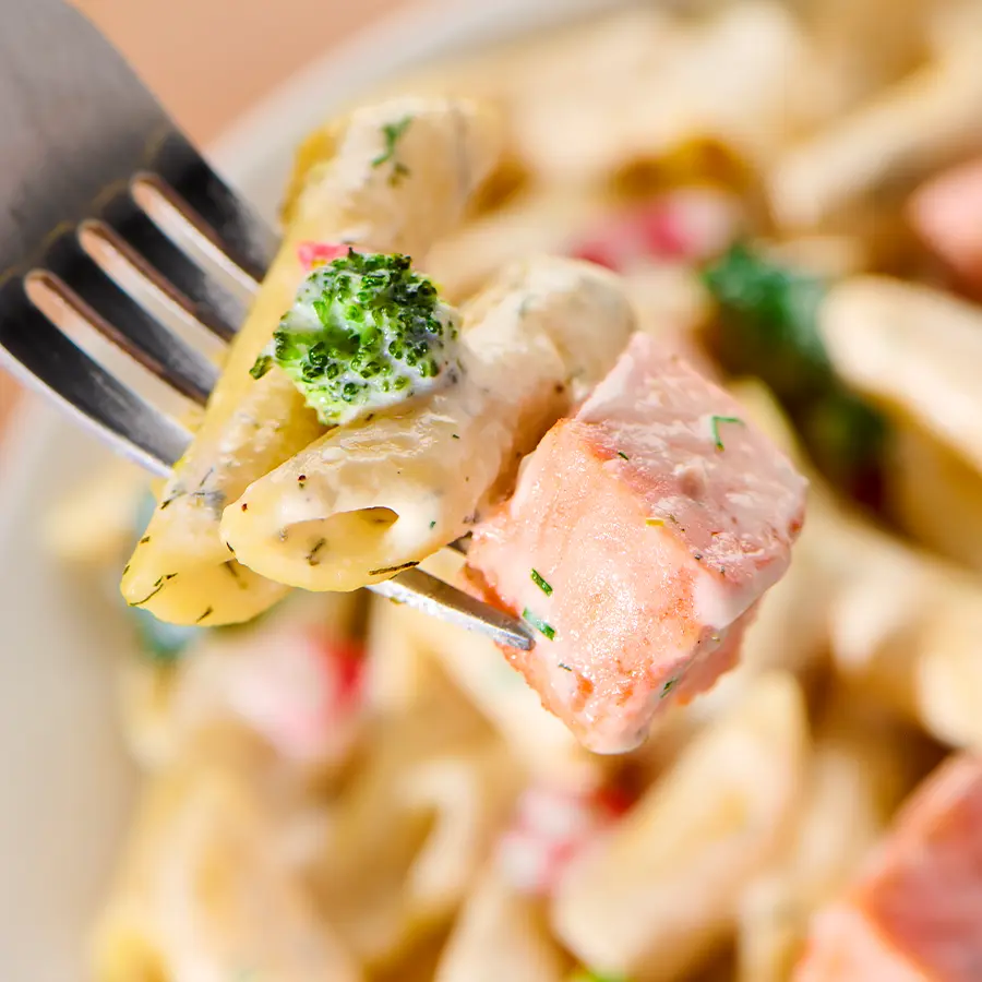 Tender salmon, penne pasta, and crisp veggies are tossed in a creamy lemon dill sauce that’s fresh and full of flavor. It’s a bright dish that feels special any time.